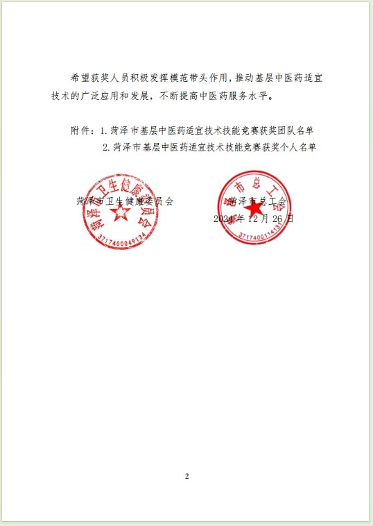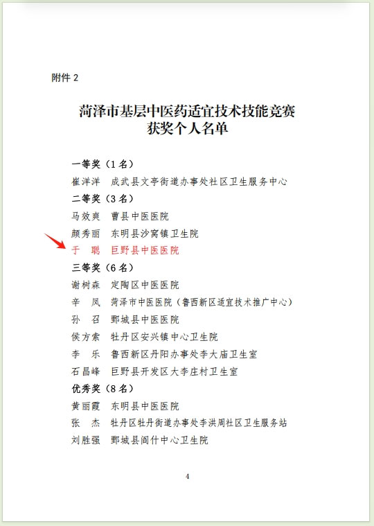 近日,我院针灸推拿科于聪在菏泽市基层中医药适宜技术技能竞赛中荣获个人二等奖,为医院挣得荣誉,彰显了我院医务人员精湛的专业技能与过硬的业务能力。
