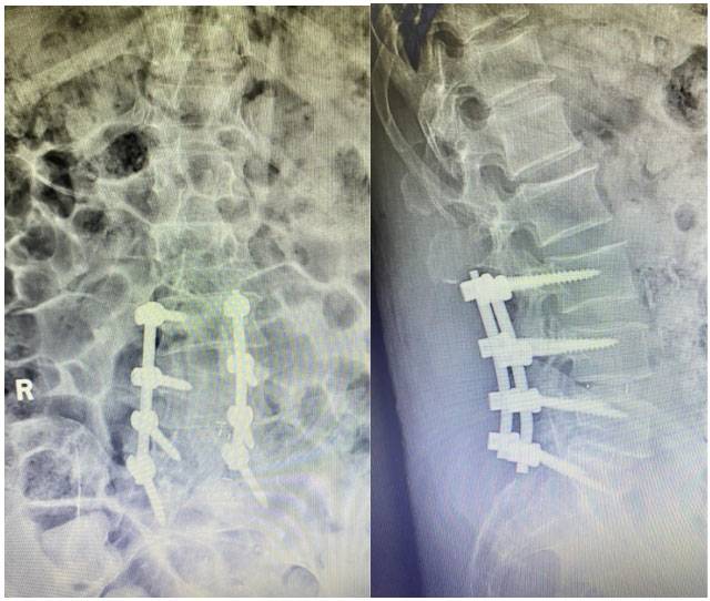 患者是一位66岁的男性,多年来深受下肢瘫痪和大小便失禁的病痛折磨。他曾辗转多家医院,尝试了针灸、理疗、药物等多种治疗方法,但症状不仅没有缓解,反而逐渐加重,最终导致下肢瘫痪和大小便失禁。绝望之际,患者经亲戚介绍来到巨野县中医医院骨伤一科就诊。 术前MR检查 骨伤一科学科带头人杨建安主任医师凭借丰富的临床经验,揭开了病痛的神秘面纱——一种罕见的“特发性椎管内硬膜外脂肪增多症”,这种病症是由于椎管内脂肪组织病理性增生,压迫马尾及神经根所致,常被误诊或漏诊。好发于男性,胸段及腰骶段。硬膜外脂肪增多症常见的病因多与长期摄入外源性甾体类激素、激素异常疾病、肥胖症等有关。 杨建安主任医师介绍,正常人的椎管内含有少量脂肪组织,但该患者的腰骶椎管内脂肪组织异常增多,对神经产生明显压迫,导致下肢瘫痪和大小便失禁。明确病因、完善术前检查并与患者及家属充分沟通后,决定为患者实施常规手术治疗,助他摆脱病痛折磨。手术过程顺利,术后患者恢复良好。 为了帮助患者尽快康复,骨伤一科护士长于凌带领护理团队为患者制定了详细的康复计划,每日督促并鼓励患者进行康复训练。在医护人员的悉心照料和患者及家属积极配合下,患者恢复良好,家属对治疗结果十分满意。 术后DR复查 巨野县中医医院骨伤一科始终致力于攻克疑难病症,以精湛的医疗技术和专业的护理服务为患者带来健康与希望,也展现了医院骨伤科在疑难病症诊疗方面的绝对实力。