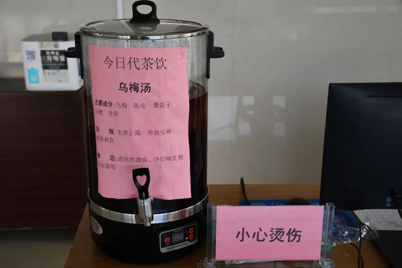 为充分发挥中医药特色优势,着力推广中医“治未病”的辨证论治思想和方法,医院特在门诊楼一楼导医台和医技楼一楼导医台设置代茶饮免费供应点。此举措不仅有意缓解患者就医时的紧张情绪,更为中医药文化的传承和普及开辟了新的途径,让群众感受医院人文关怀的同时,还能近距离接触中医药文化。
